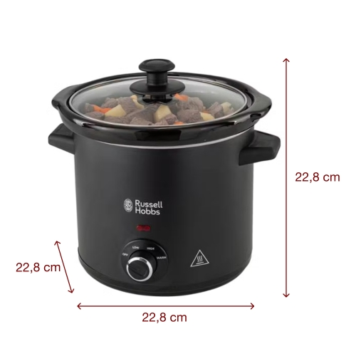 Mẫu nồi nấu chậm Russell Hobbs này sở hữu dung tích 3,5 lít, có thể nấu được 4 phần ăn nên thích hợp cho gia đình từ 3 – 4 người sử dụng.