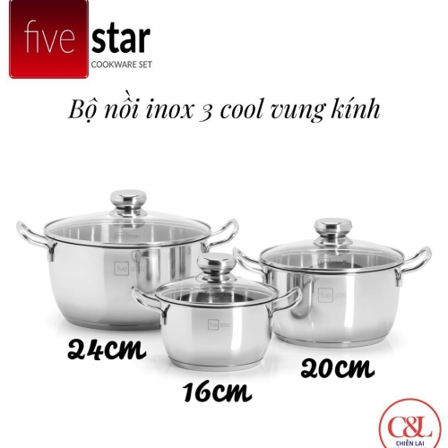🌈🌈🌈 BỘ NỒI FIVESTAR 3 COOL NẮP KÍNH INOX 430💋