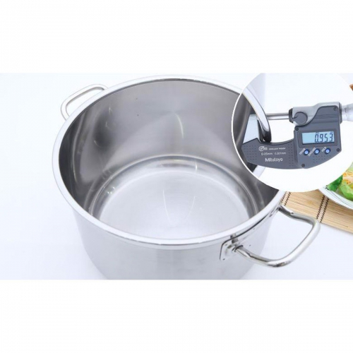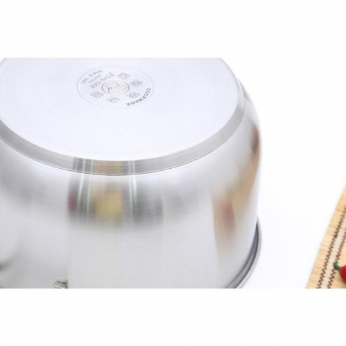 Đáy nồi 3 lớp (inox 430 – nhôm – inox 430), lớp ở giữa là nhôm có khả năng dẫn nhiệt tốt, lớp trong và ngoài cùng bằng chất liệu inox 430 chống oxi hóa, không bị bào mòn bởi hóa chất, muối, thực phẩm có tính axit… Giúp hấp thu nhiệt nhanh, tỏa nhiệt đều, nấu thức ăn chín nhanh.