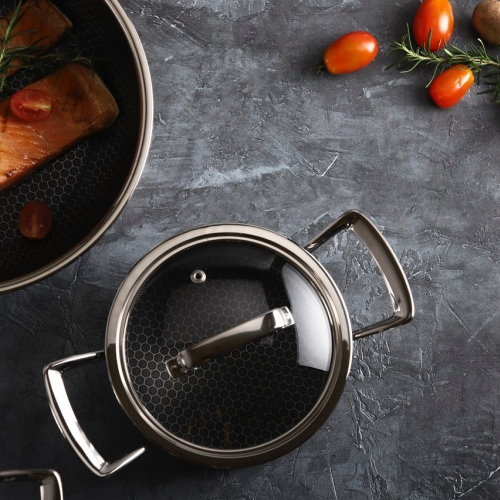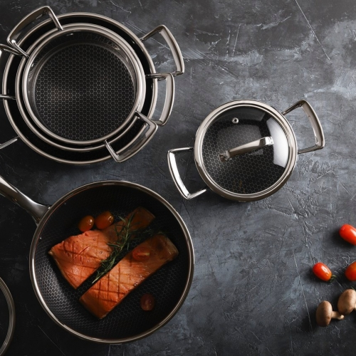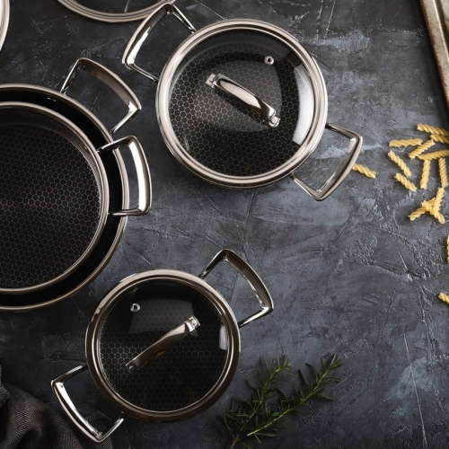 ✔️BLACKCUBE FIVESTAR 3 lớp đáy liền inox 304 siêu bền ,với kỹ thuật khoan khắc tạo ra các khối inox siêu nhỏ hình tổ ong giúp bảo vệ lớp chống dính bên dưới . Tối ưu hóa khả năng chống trầy xước lớp chống dính , nên khó bong tróc .