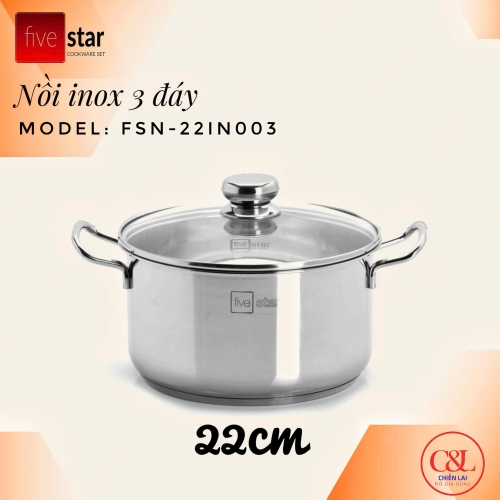 Nồi inox Fivestar đáy sandwich inox 430 đun từ size Fsn16/18/20/24 nắp kính