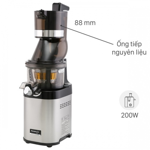 Máy ép trái cây với công suất hoạt động 200W tạo vòng quay 60 vòng/phút vắt ép triệt để các loại trái cây với công nghệ ép trục vít cưỡng bức JMCS, sẽ nhẹ nhàng nghiền nát nguyên liệu với khả năng kiệt bả lên đến 95%.