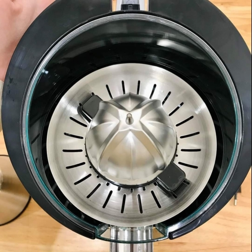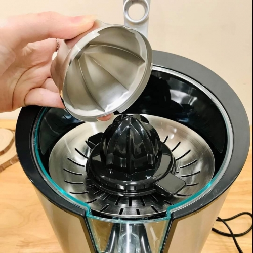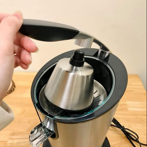 🪭Dùng tay cầm, ép miếng cam xuống nón ép. Máy sẽ tự động chạy.