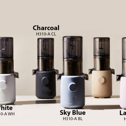 Máy ép Hurom H310A được xem là phiên bản mini của mẫu máy ép chậm H300 tiền nhiệm khi được kế thừa gần như toàn bộ các tính năng hiện đại nhưng mỏng hơn, nhẹ hơn và mang màu sắc trẻ trung hơn với 4 gam màu Trắng, Tím Lavender, Xanh da trời và Than chì (Charcoal) kích thích giác quan của mọi người.