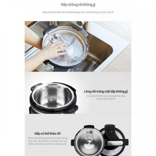 Nắp có thể tháo rời hoặc vệ sinh bằng chức năng "nấu tự chỉnh" và cho thêm nước vào để làm sạch bên trong nồi và van thoát áp suất.
