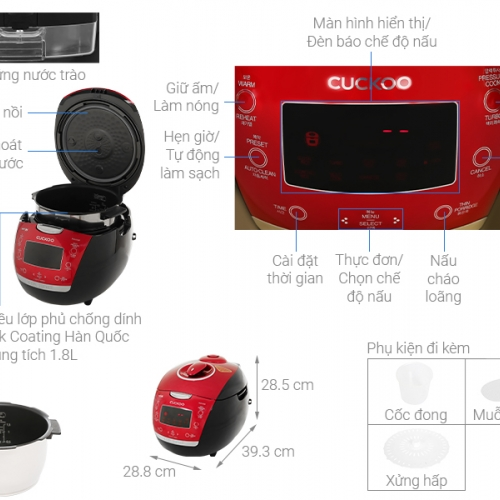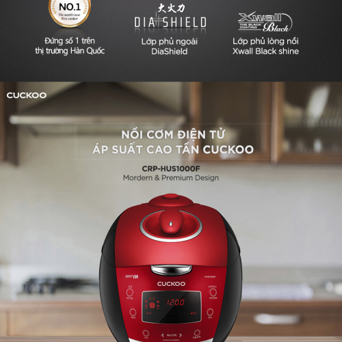 Nồi cơm áp suất cao tần Cuckoo CRP-HUS1000F 1.8 lít hiện đại, đa chức năng tiện dụng, nấu ngon, an toàn, lựa chọn hữu ích cho gian bếp gia đình.