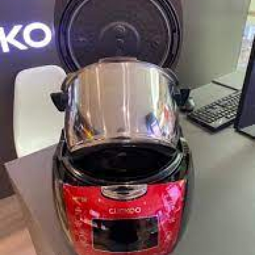 Nồi cơm điện cao tần có lớp vỏ màu đen và đỏ hiện đại, thiết kế sang trọng, hài hòa cho không gian kiến trúc hiện đại