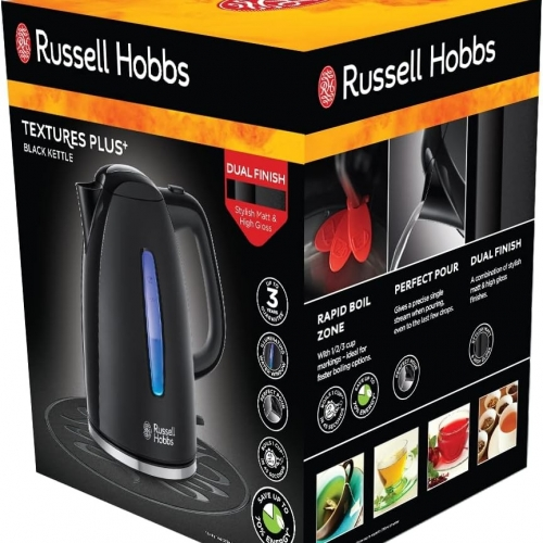👉Russell hobbs thiết kế vòi rót nước tránh làm rơi nước ra ngoài. Có vạch chỉ số dung tích nước màu xanh blue. Có đèn báo đun nước màu đỏ.