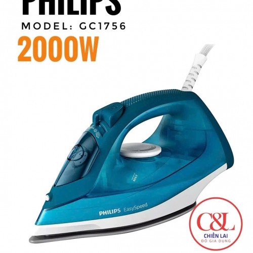 🍀Bàn ủi hơi nước Philips GC1756 có công suất lên tới 2000W mang lại luồng hơi mạnh và ổn định