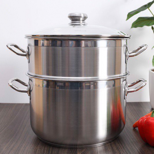 Bộ nồi xửng gồm 1 xửng hấp và 1 nồi chất liệu inox 430 bền tốt, ít bị oxy hóa, dễ vệ sinh.