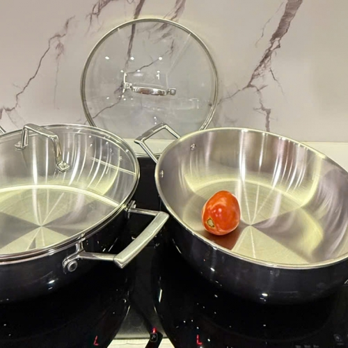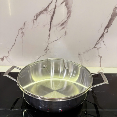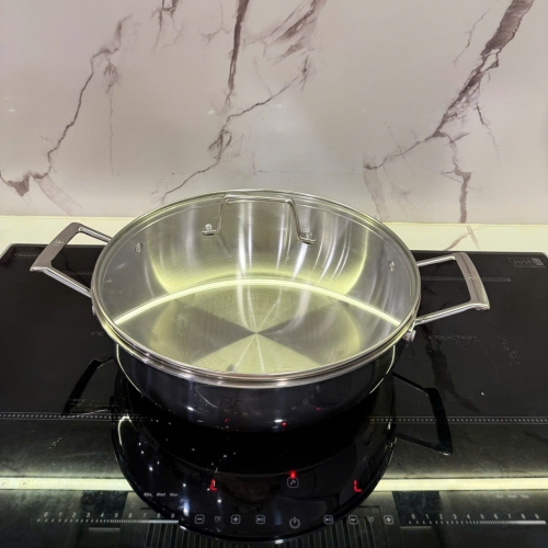 đồ ăn, và có thể làm nồi lẩu khi có dịp chiếc chảo sâu đến 𝟵𝗰𝗺. Nắp nồi bằng kính, trong suốt dễ dàng quan sát