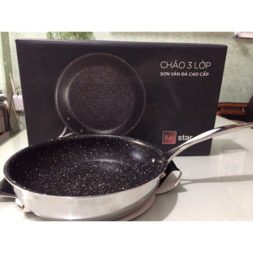 Chảo chống dính Fivestar 3 lớp được sản xuất theo công nghệ tiên tiến, dùng được cho bếp than, bếp gas, bếp điện và bếp từ. Sản phẩm sở hữu thiết kế tinh tế kết hợp màu sắc trang nhã, góp phần mang đến vẻ sang trọng, hiện đại cho không gian bếp gia đình bạn.