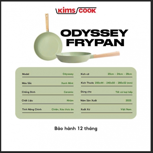 🎾Chảo Odyssey Tay Cầm Gỗ KimsCook – Chống Dính Tuyệt Đối – Dùng Mọi Loại Bếp🎾