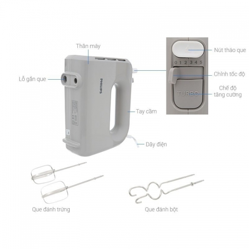 Máy Đánh Trứng Philips HR3705 có thiết kế gọn nhẹ với tay cầm chắc chắn để bạn sử dụng dễ dàng mà không bị mỏi tay khi sử dụng lâu. Các bộ phận dễ dàng tháo rời và vệ sinh được trong máy rửa chén.