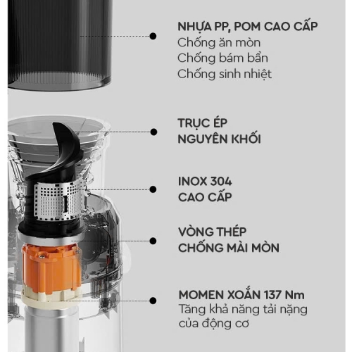 🥀Động cơ tĩnh lặng 68db, chống rung cực tốt, công suất cực mạnh 200W, máy ép hoạt động mạnh mẽ và bền bỉ hơn