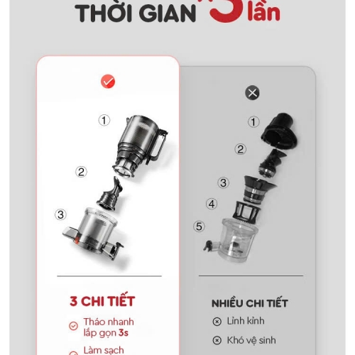 🥀Là loại máy ép chậm nguyên quả Chỉ có 3 chi tiết, quá trình tháo lắp máy vô cùng đơn giản.
