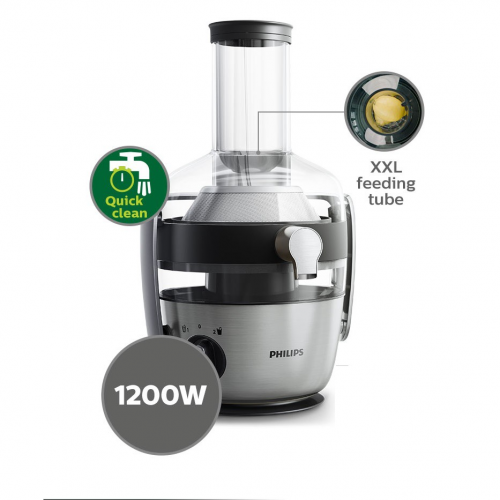 🍄Philips HR-1922 có ống tiếp nguyên liệu đường kính lớn với kích thước 75mm. Với đường kính này, bạn có thể thoải mái ép nguyên trái mà không cần phải cắt nhỏ, tiết kiệm thời gian và công sức đáng kể.