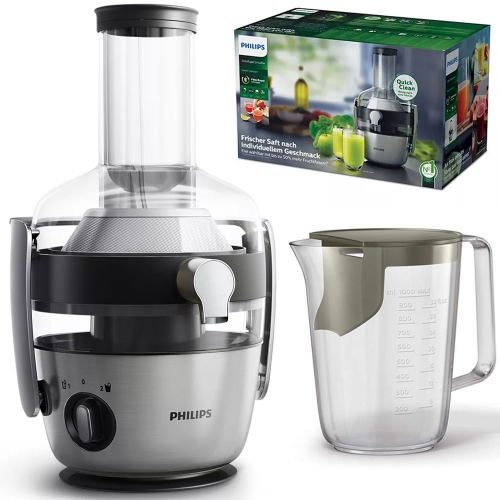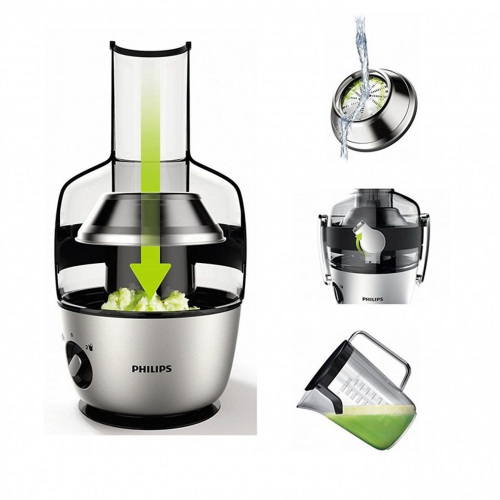 🍄Máy ép trái cây HR1922 trang bị lưỡi dao bằng thép không gỉ sắc bén, kết hợp công suất hoạt động 700W, giúp ép thực phẩm nhanh, tiết kiệm điện. Tùy theo loại trái cây hoặc rau, có thể tạo lên đến 2.0L nước ép một cách nhanh chóng mà không cần đổ hết bã trong ngăn chứa nhiều lần.