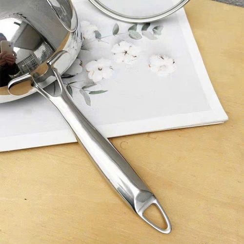 👉 Tay cầm bằng thép đúc chắc chắn, không có đinh tán trong nồi, dễ lau chùi