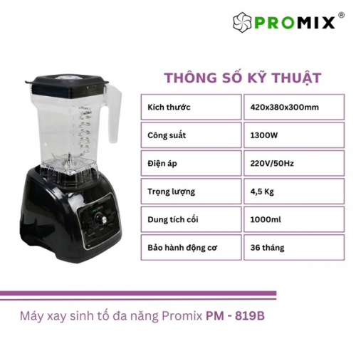 🍀Điểm nổi bật của máy xay Promix 819B chính là động cơ và lưỡi dao. Promix 819B được trang bị động cơ lên tới 1300W không thua kém gì các sản phẩm công nghiệp cao
