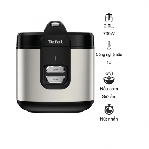 Nồi cơm điện Tefal có thiết kế đơn giản, dễ hiểu với các chế độ nấu (Cook) và chế độ giữ ấm (Warm). Khi cơm chín, nồi cơm sẽ chuyển từ chế độ Cook sang chế độ Warm và giữ ở chế độ giữ ấm, giúp cơm chín ngon hơn và giữ nóng lâu hơn.