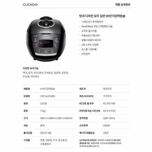 🌺 NỒI CƠM ĐIỆN CAO TẦN Cuckoo CRP-HUF10BS🌺