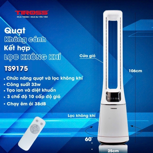 🛎️[𝑯𝒂̀𝒏𝒈 𝒎𝒐̛́𝒊 𝒗𝒆̂̀] QUẠT THÁP KÈM LỌC KHÔNG KHÍ TIROSS TS-9175
