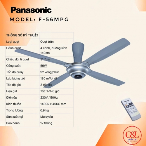 🏓🏓Quạt trần Panasonic F-56MPG 4 cánh (có điều khiển)🏓🏓