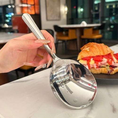 Công dụng: phù hợp với các món nước, lòng thìa rộng có thể sử dụng như một thìa đựng tạm thời khi ăn lẩu, ngoài ra sản phẩm có thể dùng làm muôi múc canh, thìa xới cơm,…