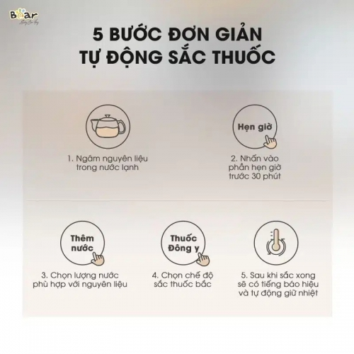 Để quá trình sắc thuốc trở nên đơn giản và dễ dàng, trước hết, bạn cần nắm được các bước thao tác thực hiện của ấm sắc thuốc Bear SB-AST35. Dưới đây là hướng dẫn chi tiết cách sử dụng sản phẩm.