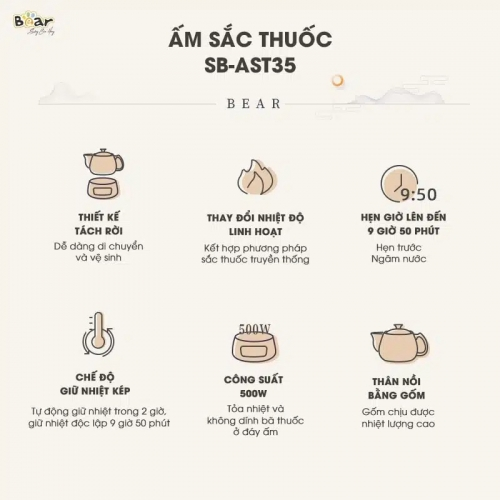 | Tên sản phẩm | Ấm sắc thuốc Bear SB-AST35 |