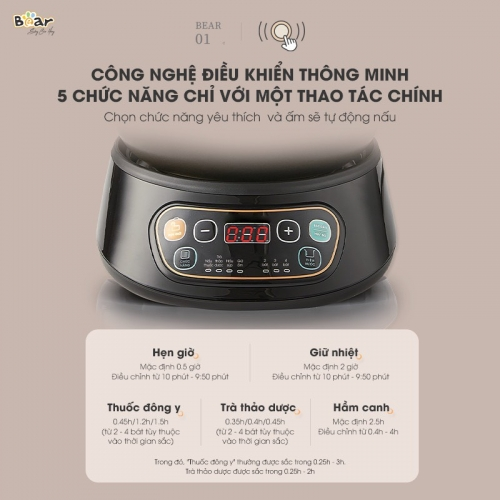 Ấm sắc thuốc Bear SB-AST35 được trang bị công nghệ điều khiển thông minh, bao gồm 5 chức năng khác nhau: